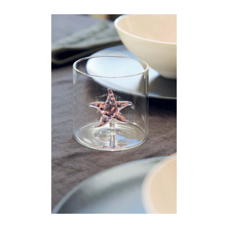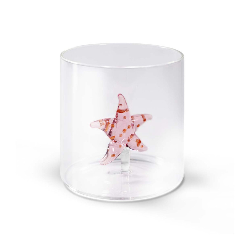 Bicchiere in vetro borosilicato con soggetto in vetro colorato all'interno.