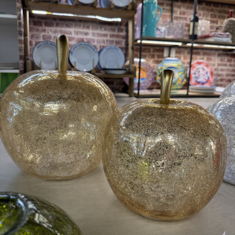 Il picciolo color oro aggiunge un tocco di raffinatezza, trasformando la mela in un elemento decorativo prezioso e ricercato.