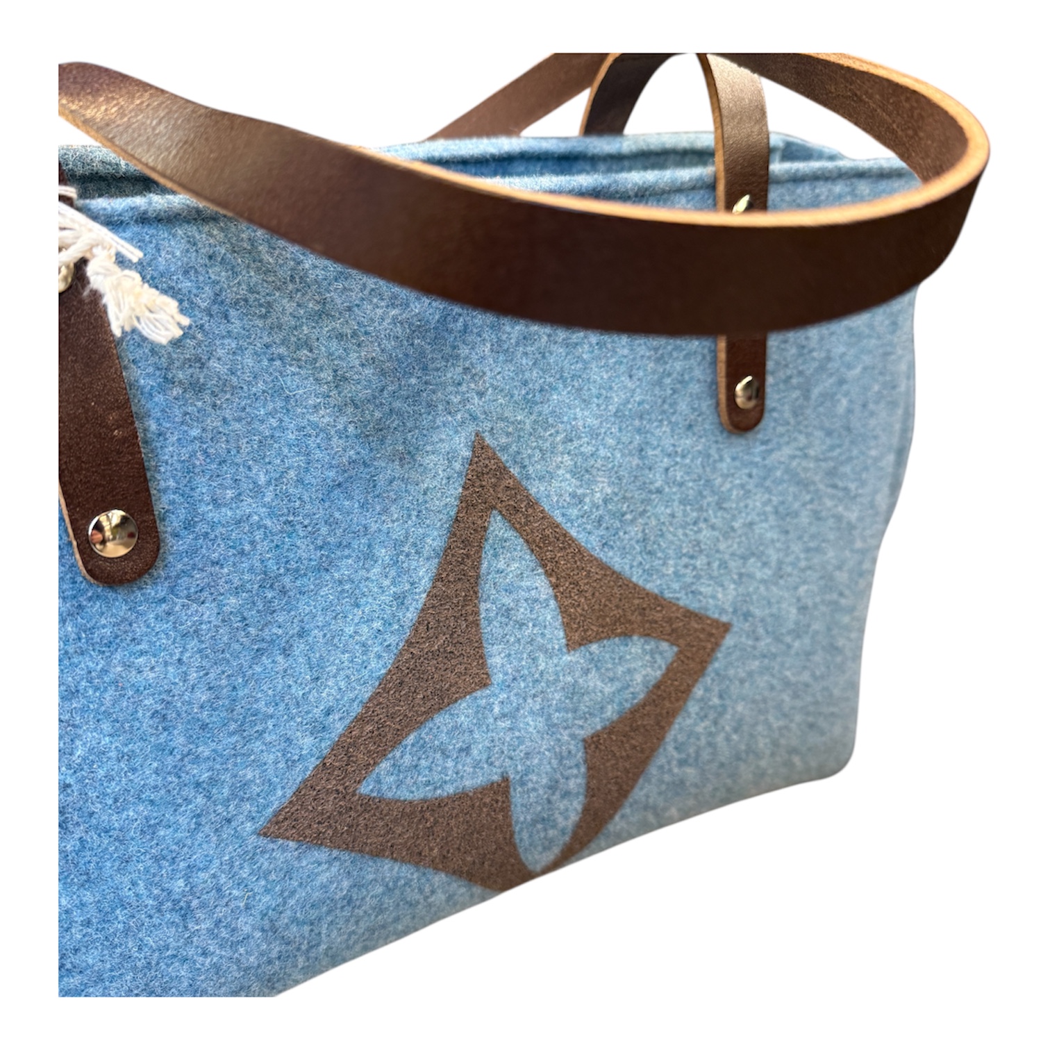Borse realizzata a mano in feltro con dettagli in pelle e stoffa.