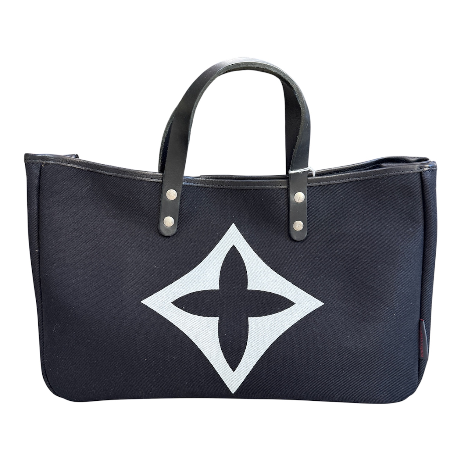 È resistente, leggera, capiente, e soprattutto fatta con cura: realizzata in canvas con manici in pelle.