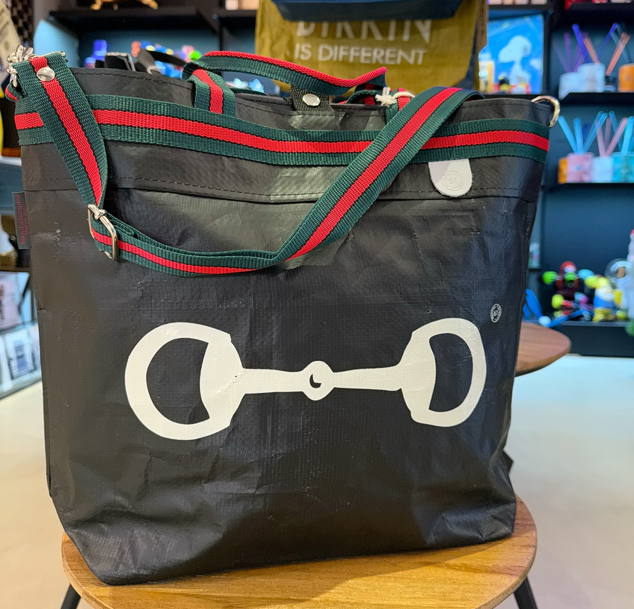È resistente, leggera, capiente, e soprattutto fatta con cura: realizzata in polipropilene riciclato e riciclabile, con manici e tracolla in nastro verde e rosso che aggiungono un tocco sportivo ma ricercato.