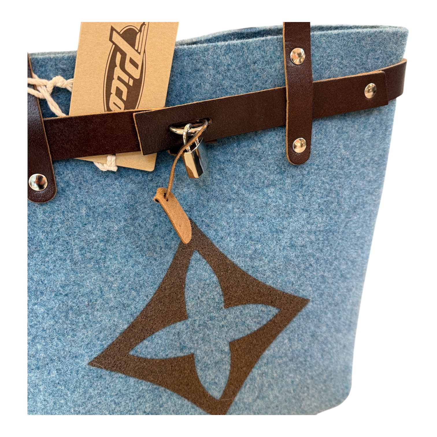 Borse realizzata a mano in feltro con dettagli in pelle e stoffa.