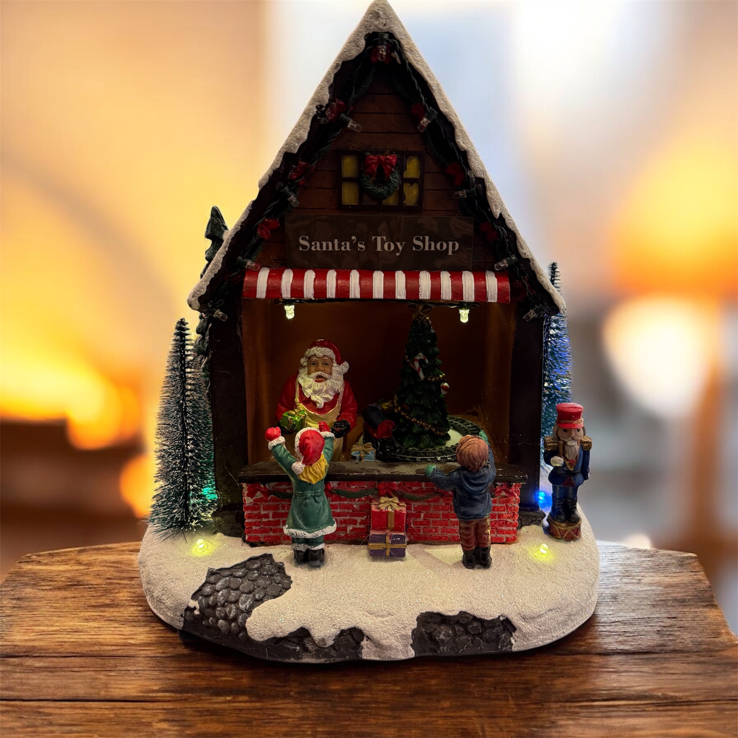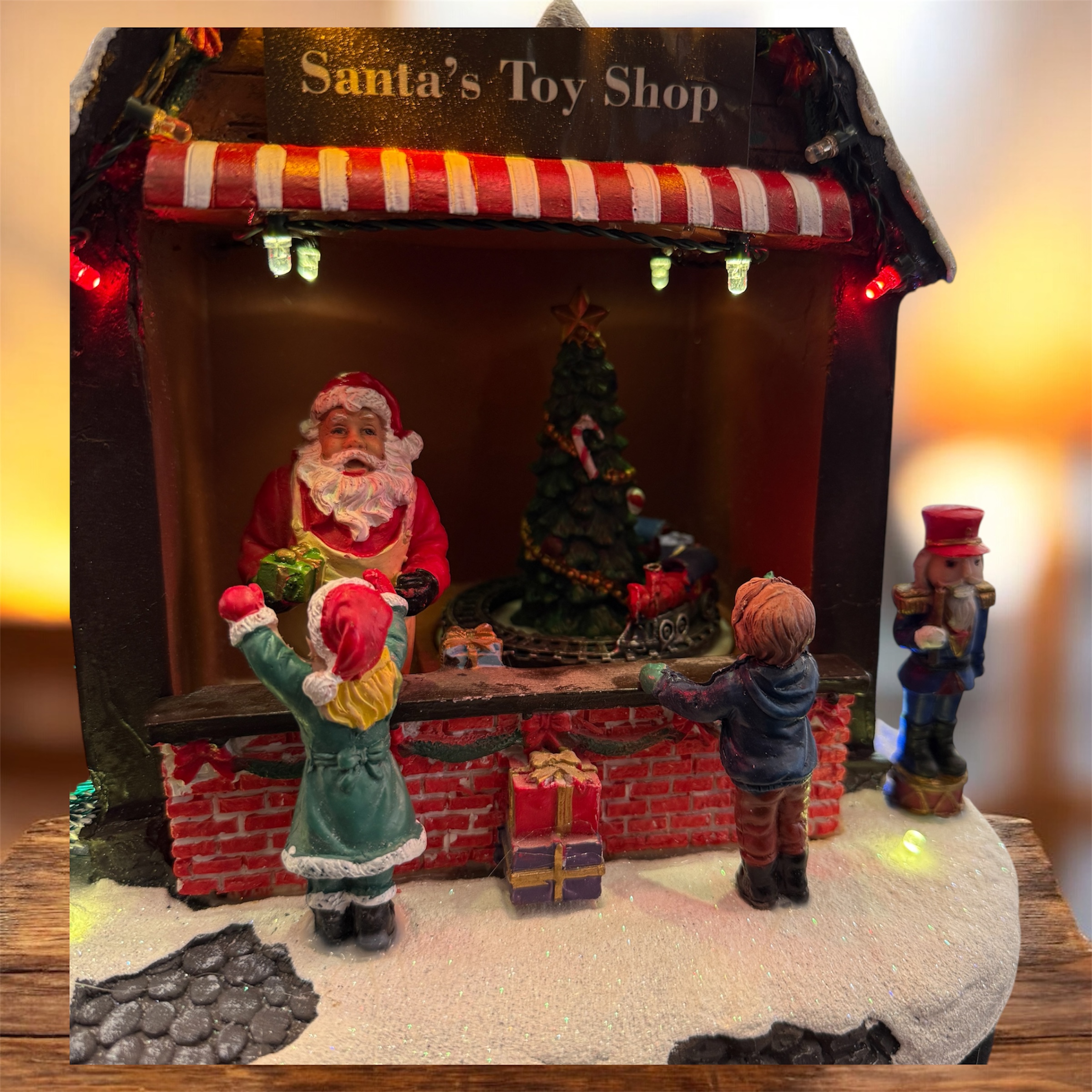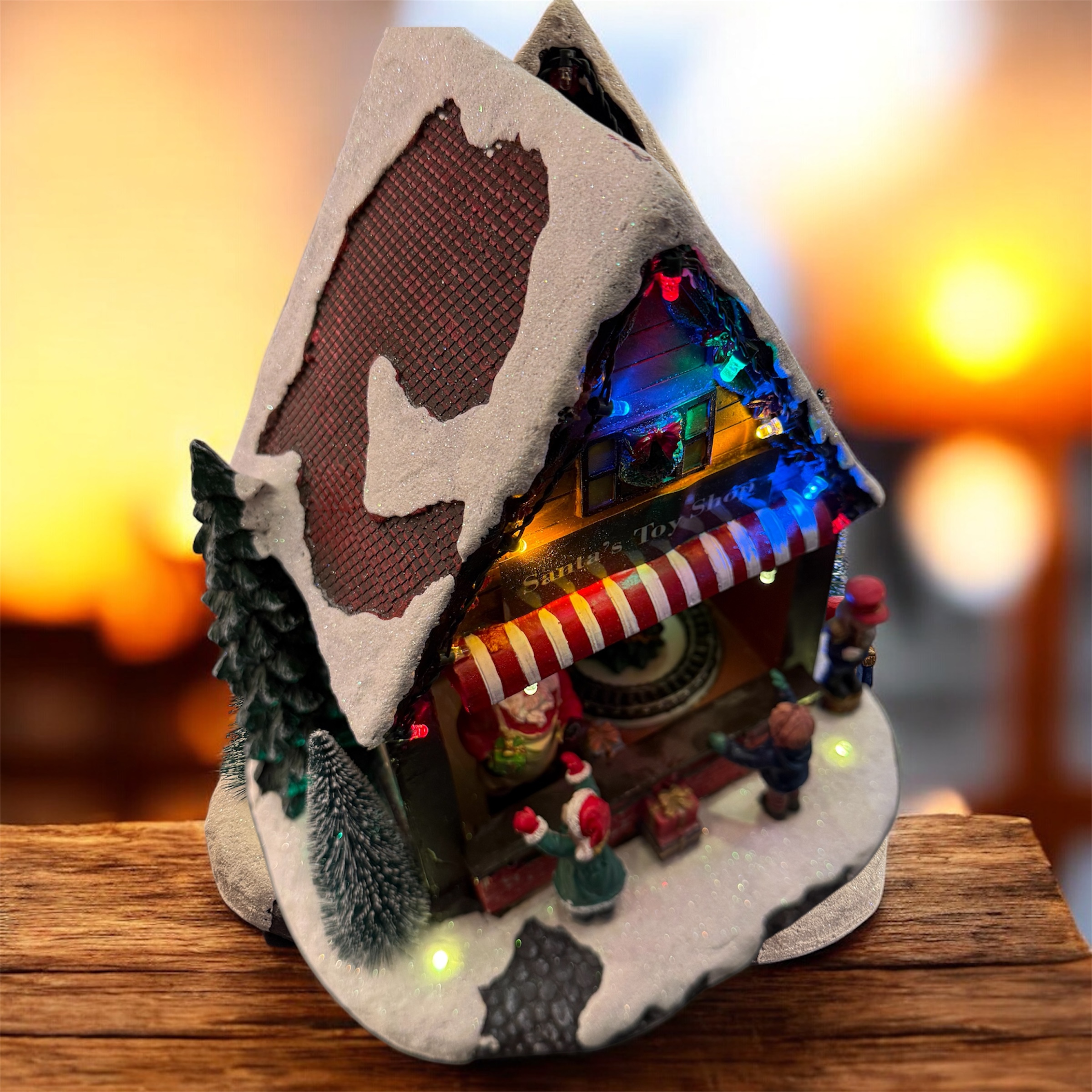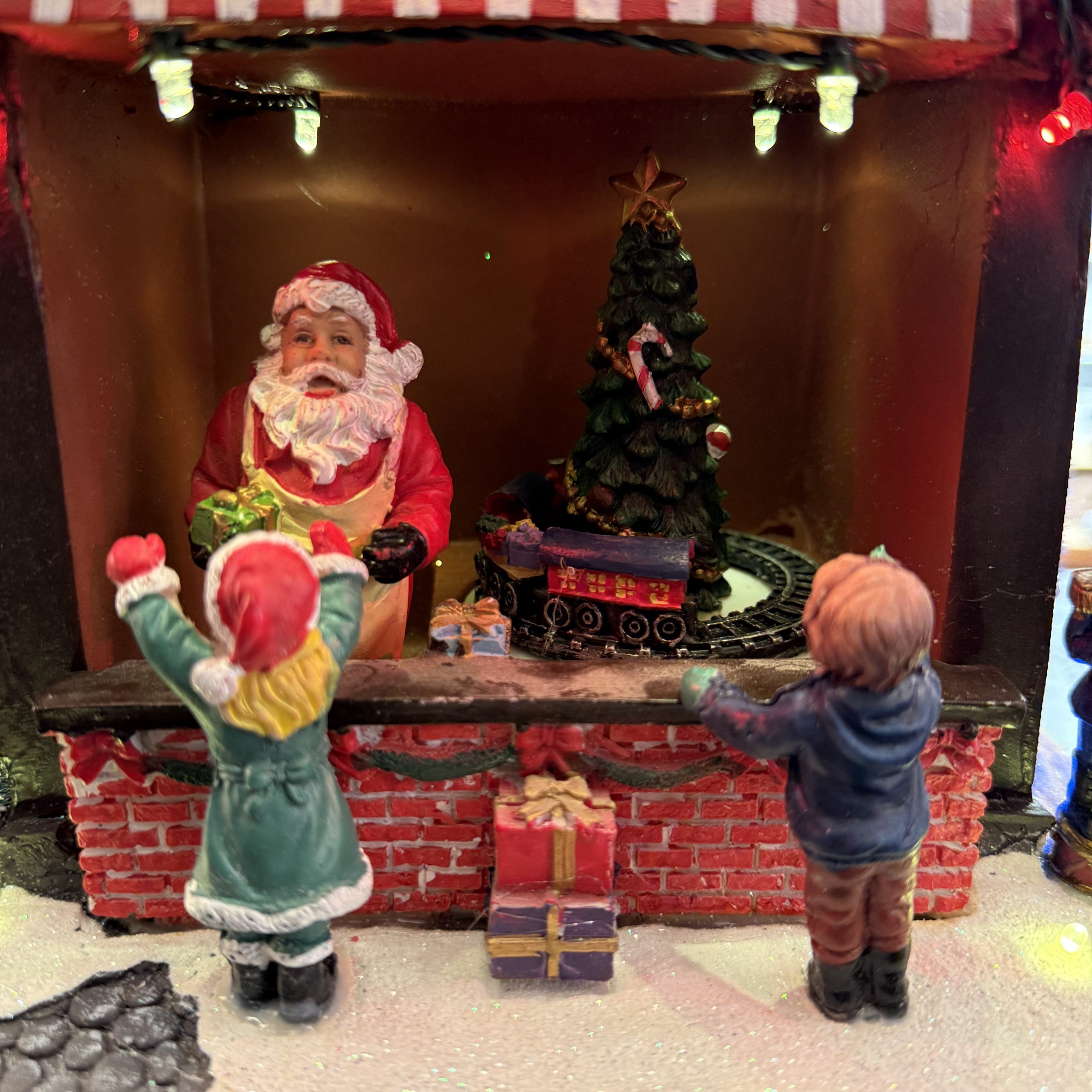 Casetta Babbo Natale che distribuisce regali ai bambini.