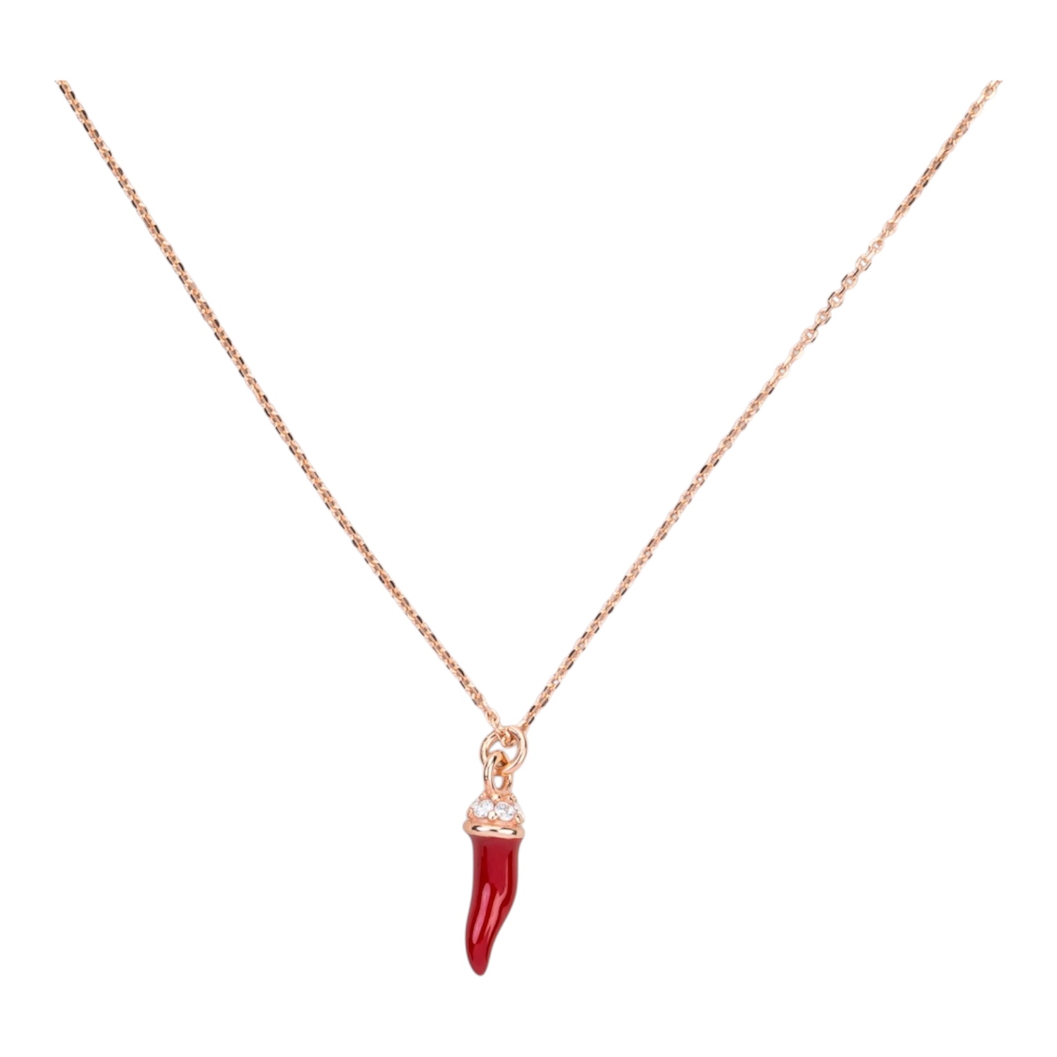 Collana in Ag925 con elemento smalto e pavé, galvanica rosata 18kt.