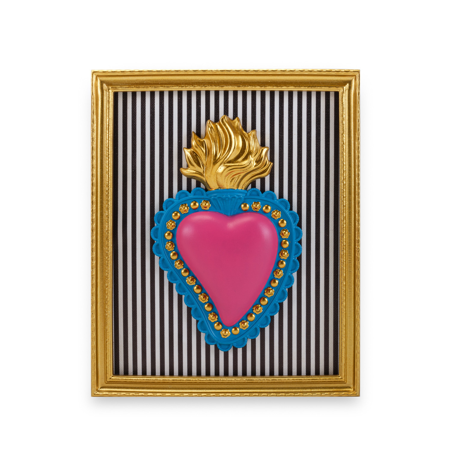 Cornice in poliresina colorata con cuore sacro da appendere.