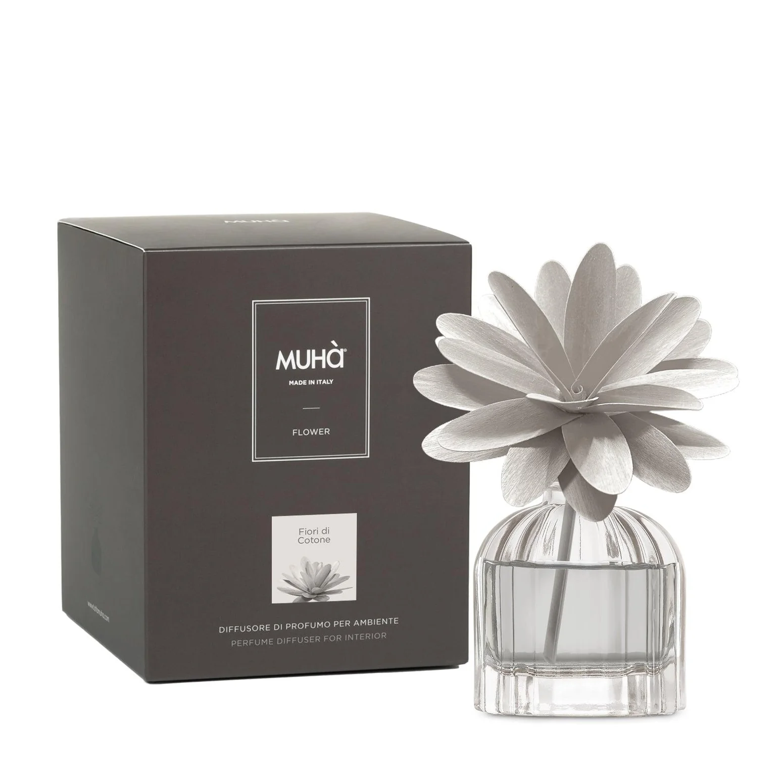 FIORI DI COTONE Fragranza delicata e soave con note di bergamotto unite ad un cuore fiorito di mughetto, vaniglia, ylang ylang e rosa. Note di fondo con fave di tonka, vaniglia, ambra e sandalo.