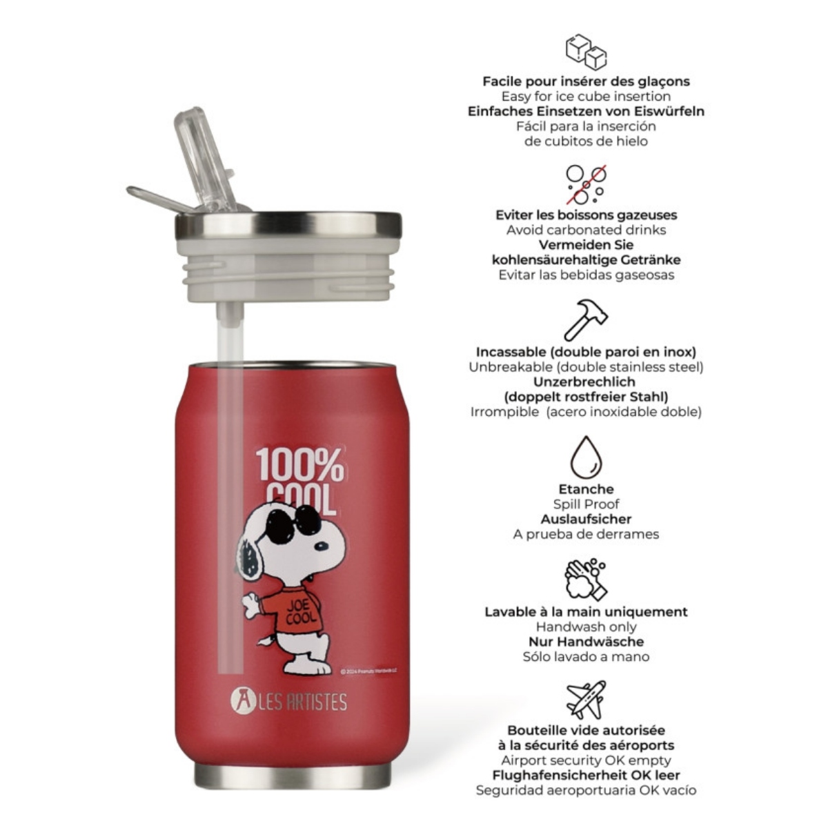L’anello metallico facilita l’apertura, il design consente di inserire facilmente i cubetti di ghiaccio e la cannuccia inclusa garantisce un utilizzo semplice!