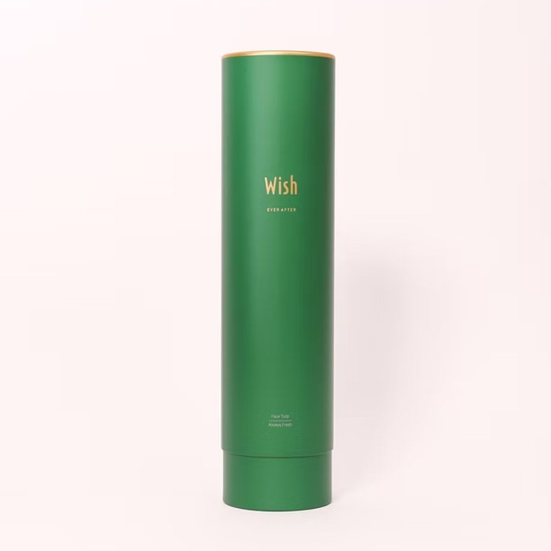 Contenuto: 5 tulipani finti in una elegante confezione di carta color verde scuro.