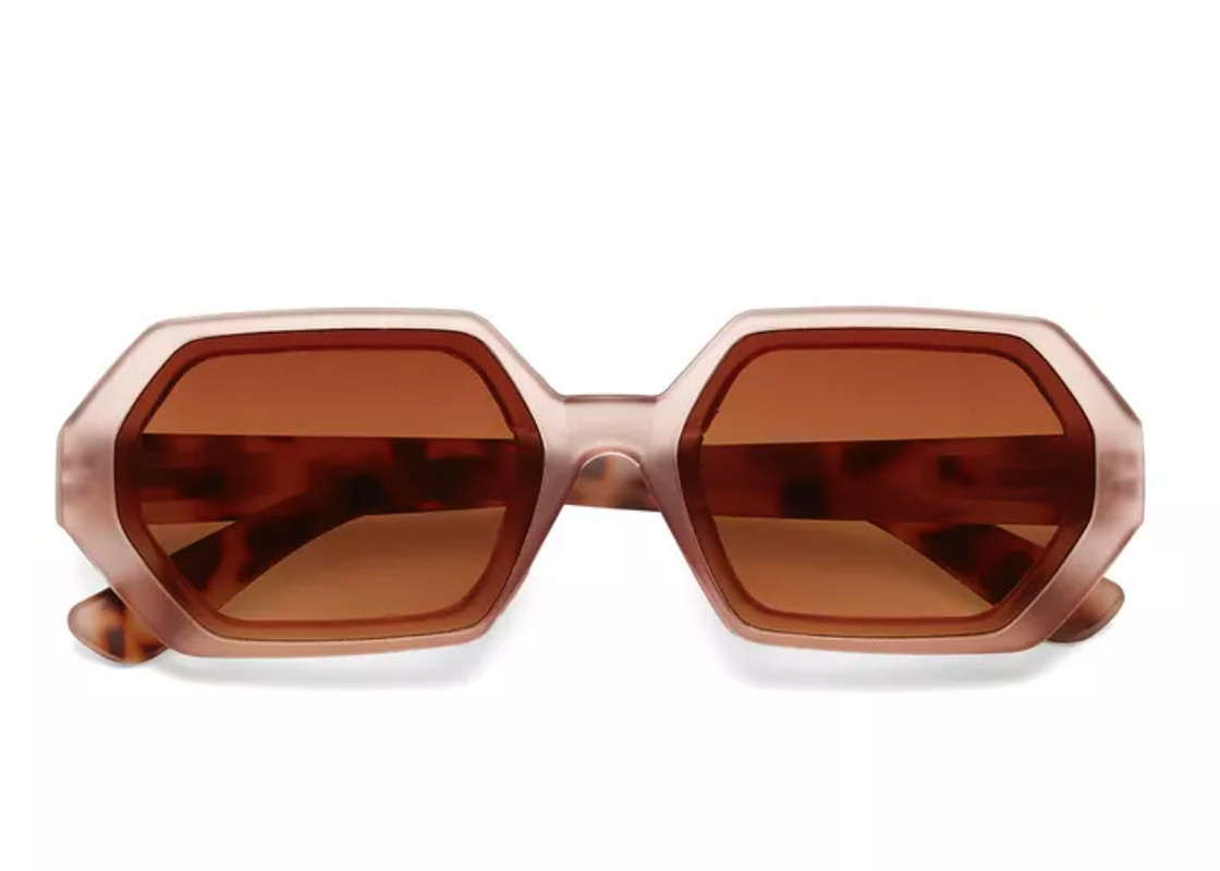 ANDREA è un occhiale da sole premontato esagonale con montatura soft touch.
