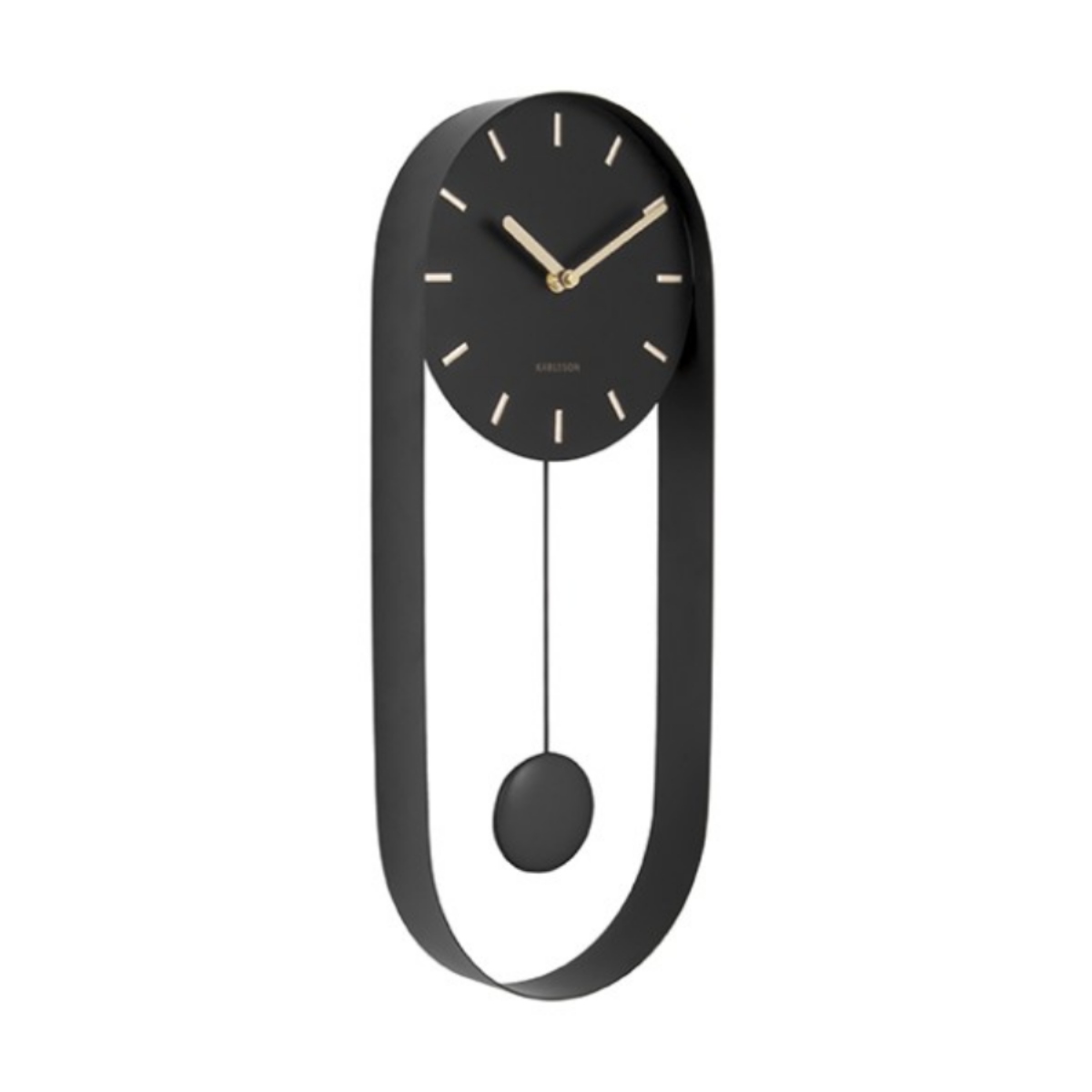 Il design del moderno orologio da parete a pendolo Pendulum Charm del marchio Karlsson si ispira ai vecchi orologi a pendolo.
