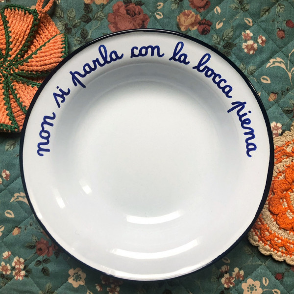 Piatto piano in latta smaltata. Leggero e resistente, è perfetto per apparecchiare la tua tavola sia all’interno sia all’esterno.