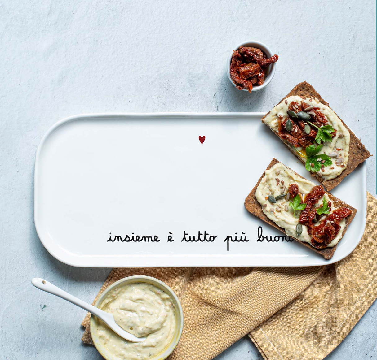 Vassoio rettangolare in gres decoro Insieme tutto è più buono.