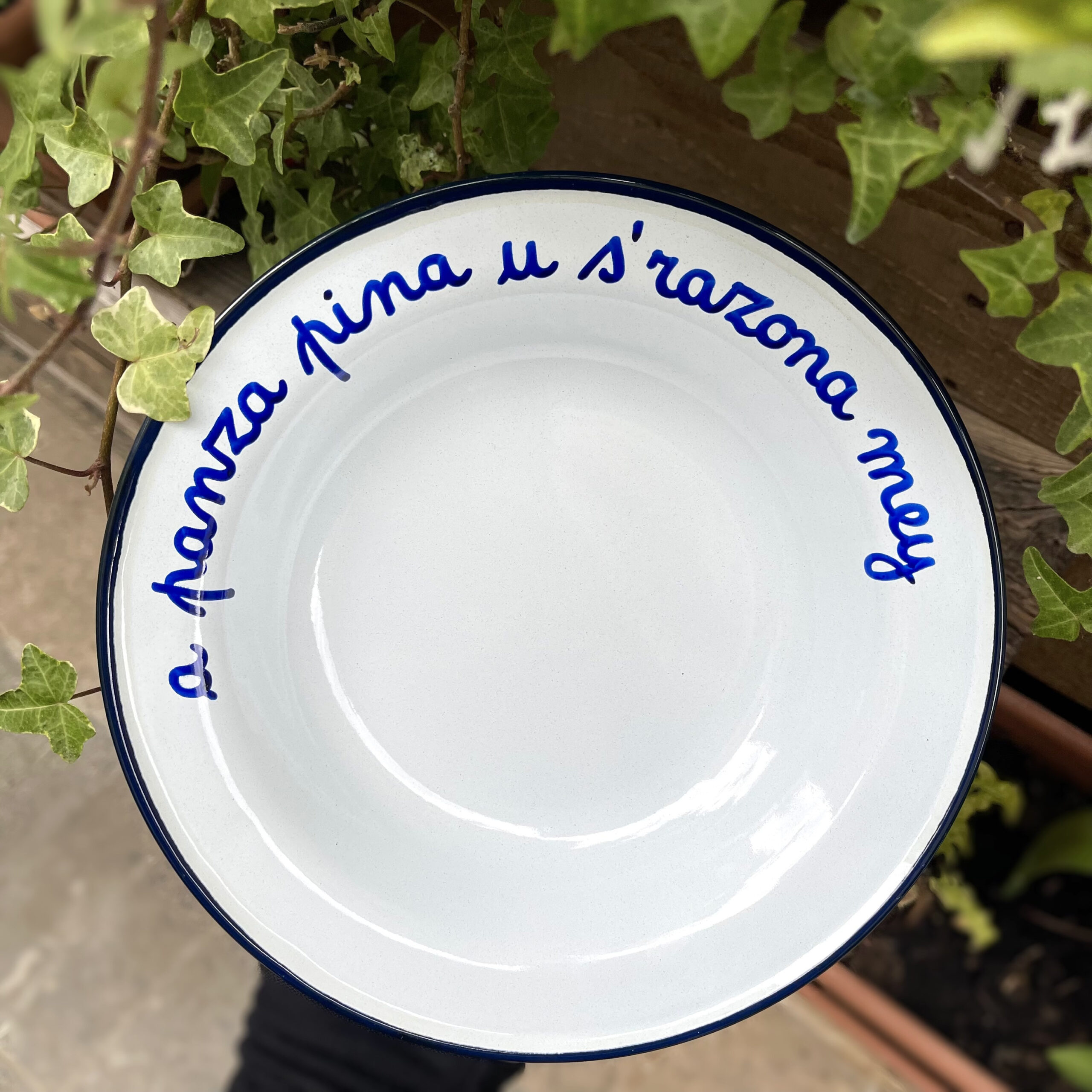 PIATTO SMALTATO “A PANZA PINA U S’RAZONA MEY”