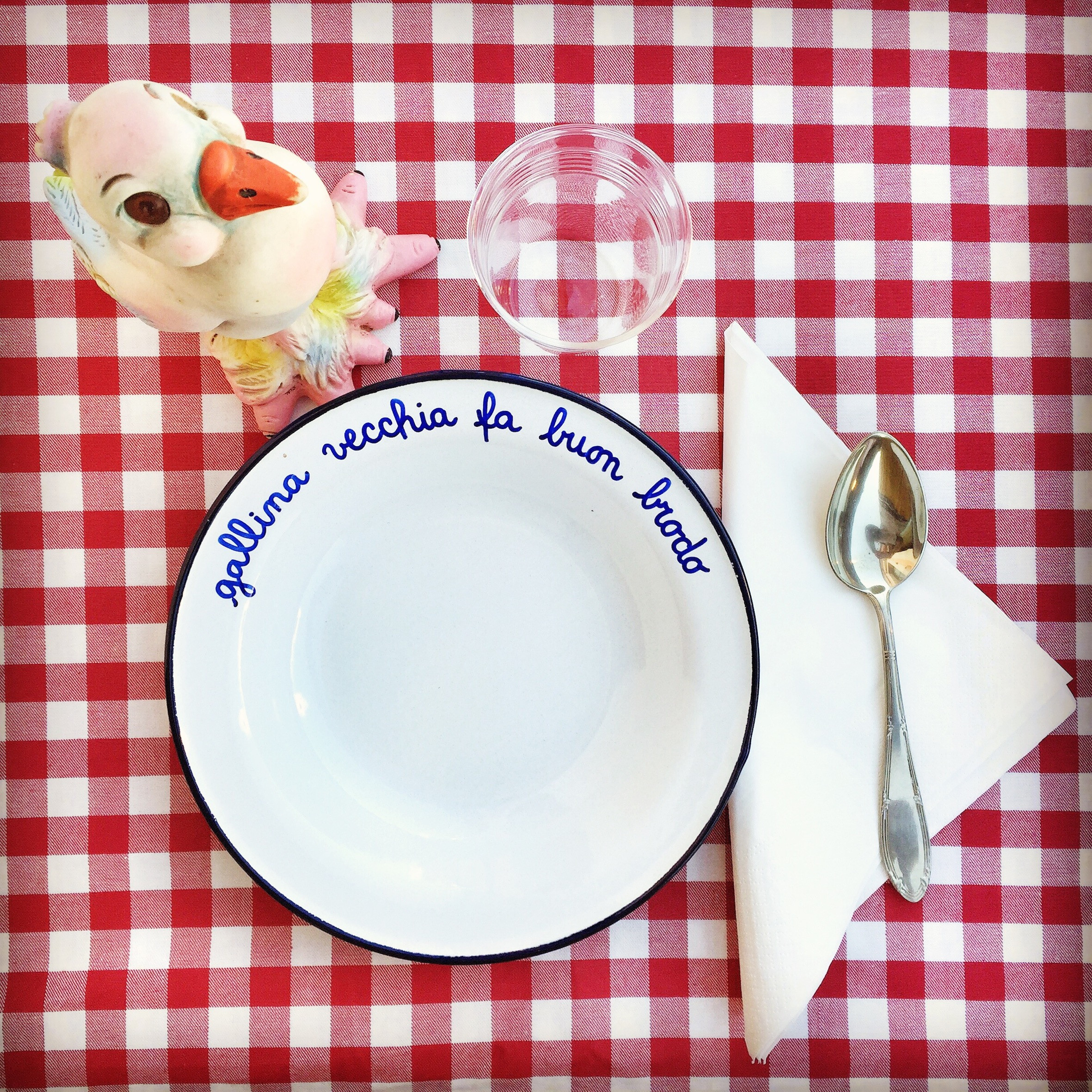 PIATTO SMALTATO “GALLINA VECCHIA FA BUON BRODO”