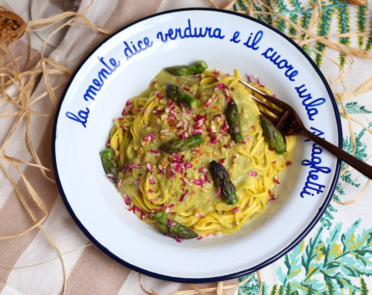 PIATTO SMALTATO “LA MENTE DICE VERDURA E IL CUORE URLA SPAGHETTI”