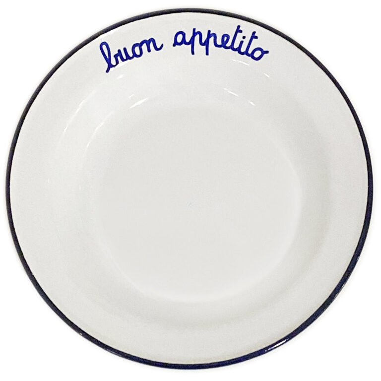 Dallo stile vintage, questo piatto fondo dal bordo blu è originario della Slovenia di fine ‘800 e fa parte della collezione “A pranzo dalla nonna”.
