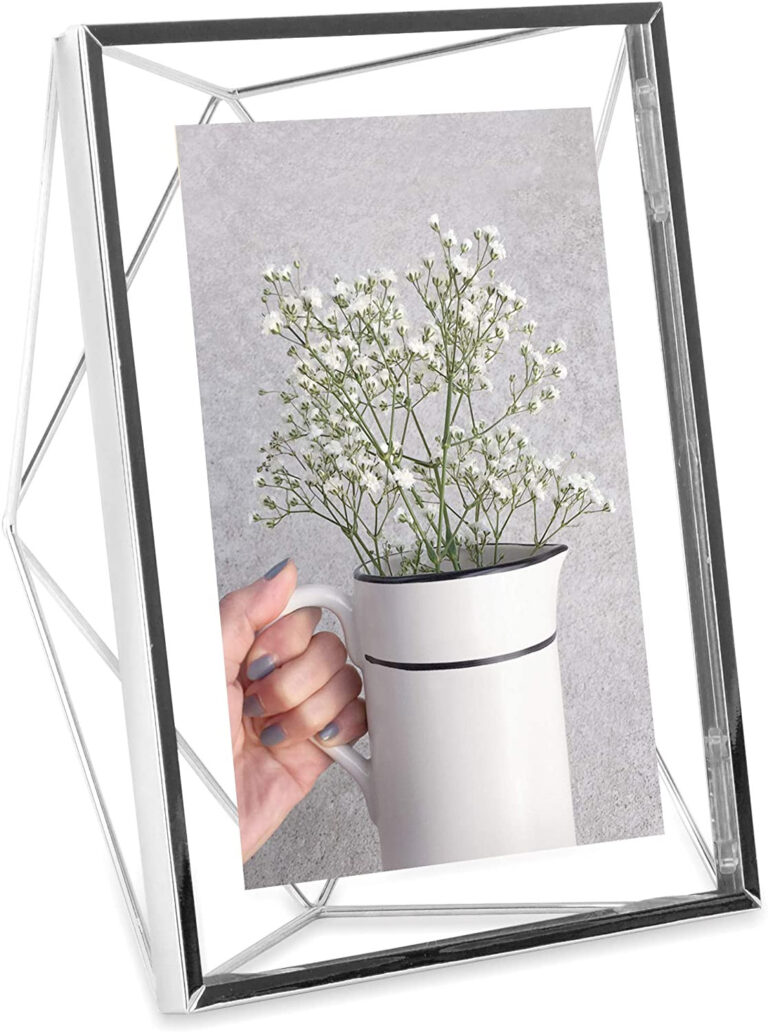 Cornice porta foto color bianco con fiori che puoi sia appoggiare oppure appendere.