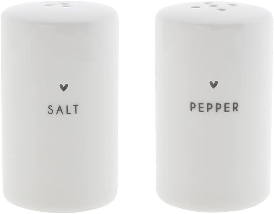 Set sale e pepe bianco con decoro in colore nero.
