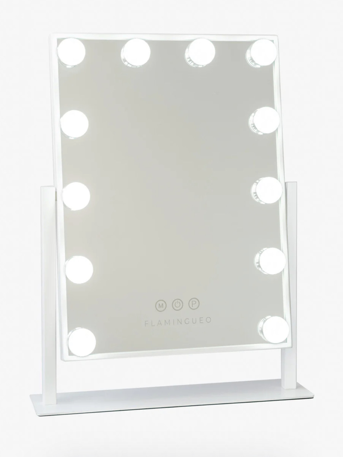• Lo specchio dimmerabile con 12 lampadine LED in stile Hollywood è perfetto per truccarsi e svolgere la beauty routine, aggiungendo un tocco di eleganza al tuo spazio trucco. Regola il colore e l’intensità della luce con i pulsanti touch. Include uno specchio ingranditore 10x.