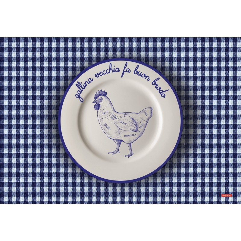 Utilizzando il classico motivo del quadretto bianco e blu e bianco e rosso una serie di decori con alcuni dei proverbi o dei modi di dire della tradizione italiana.