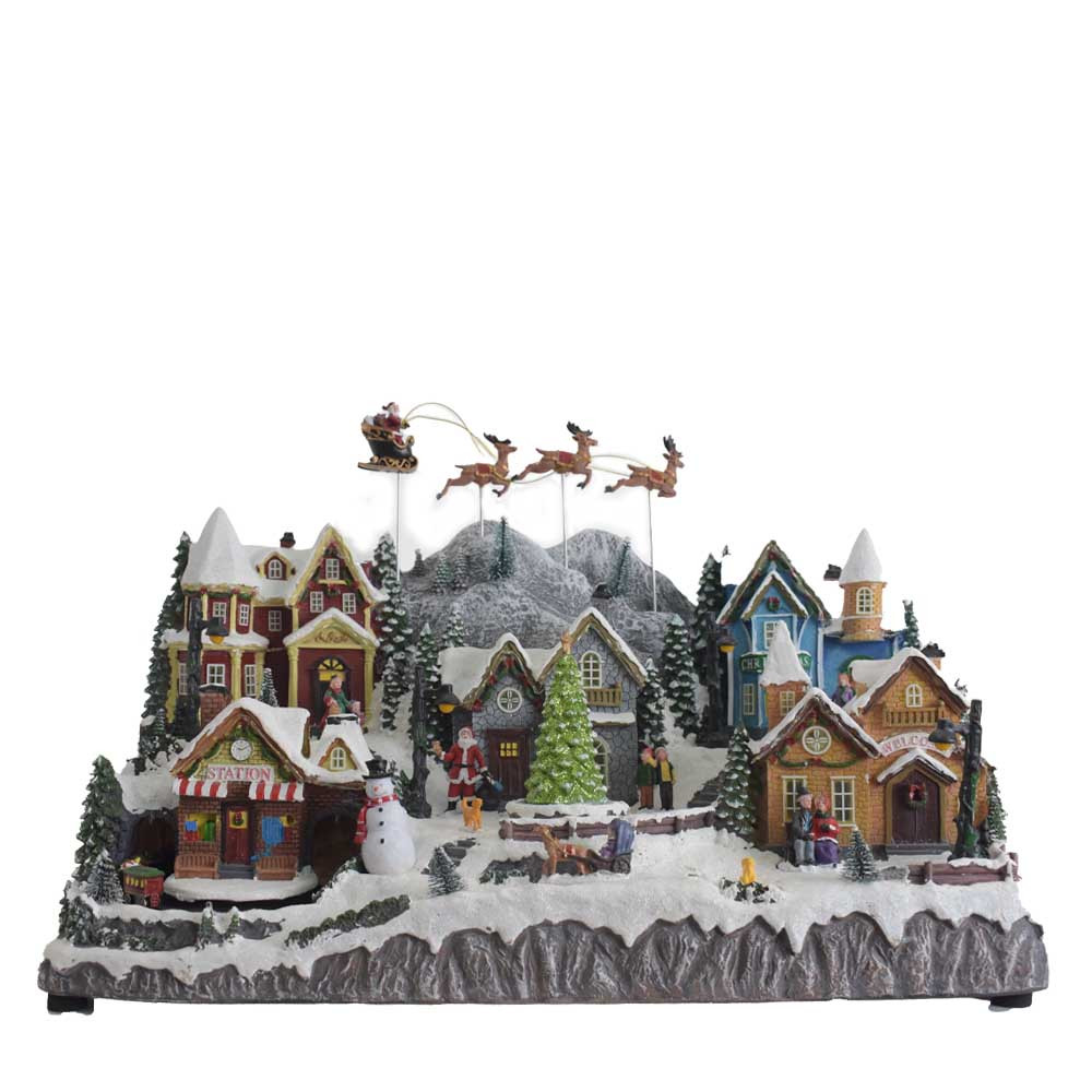 Carillon Villaggio Di Neve in resina con renne e luci, è un elemento ideale per decorare la casa nel periodo più atteso dell’anno.