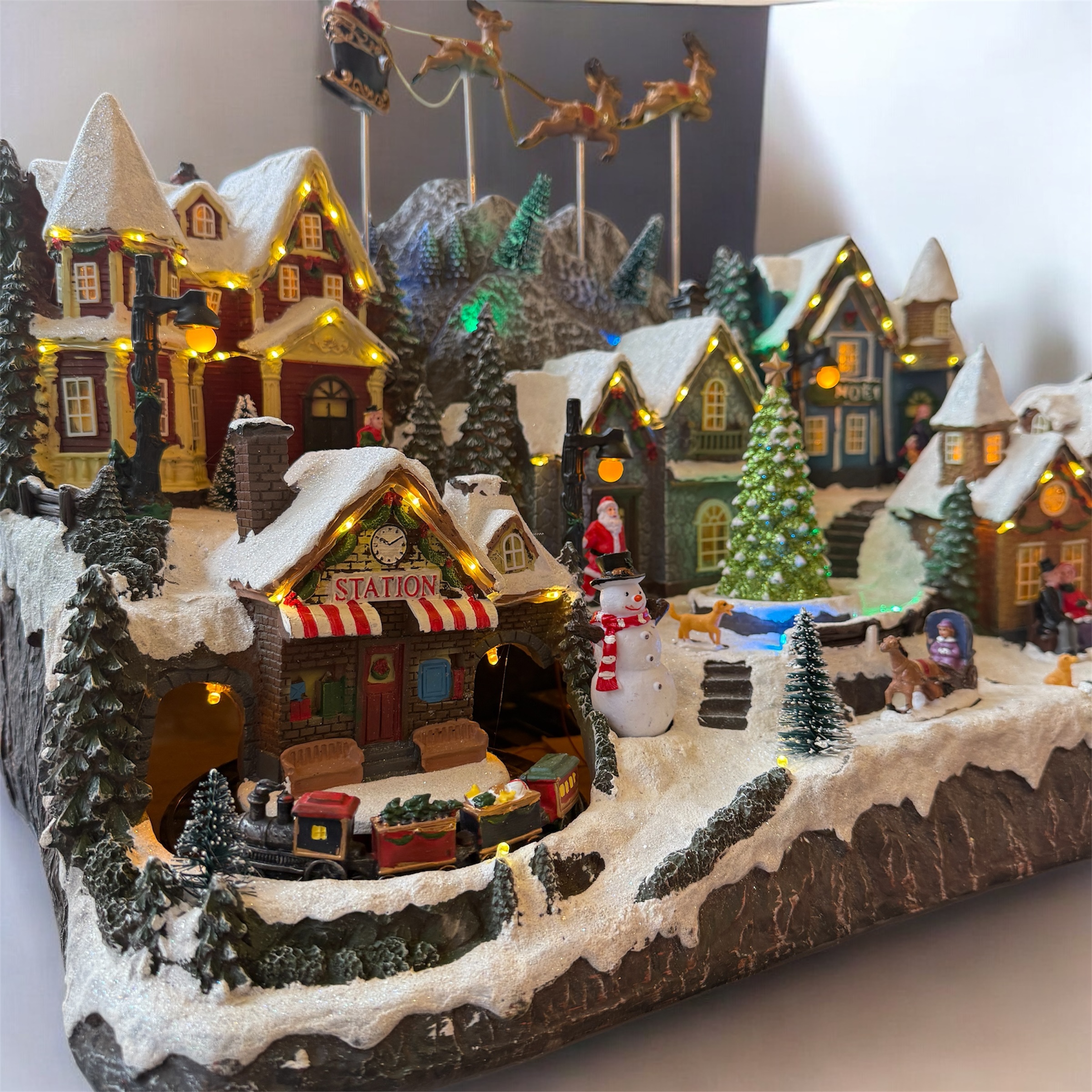 Carillon Villaggio Di Neve in resina con renne e luci, è un elemento ideale per decorare la casa nel periodo più atteso dell’anno.